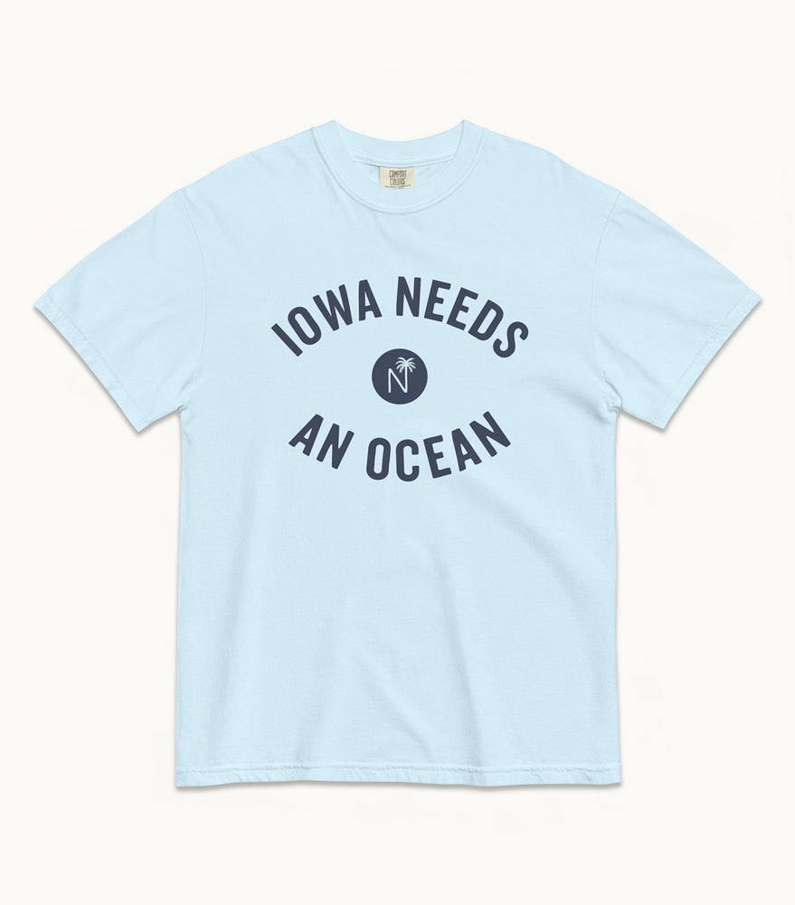 Iowa NEEDS AN OCEAN Tees (Chambray, Ivory, Watermelon)